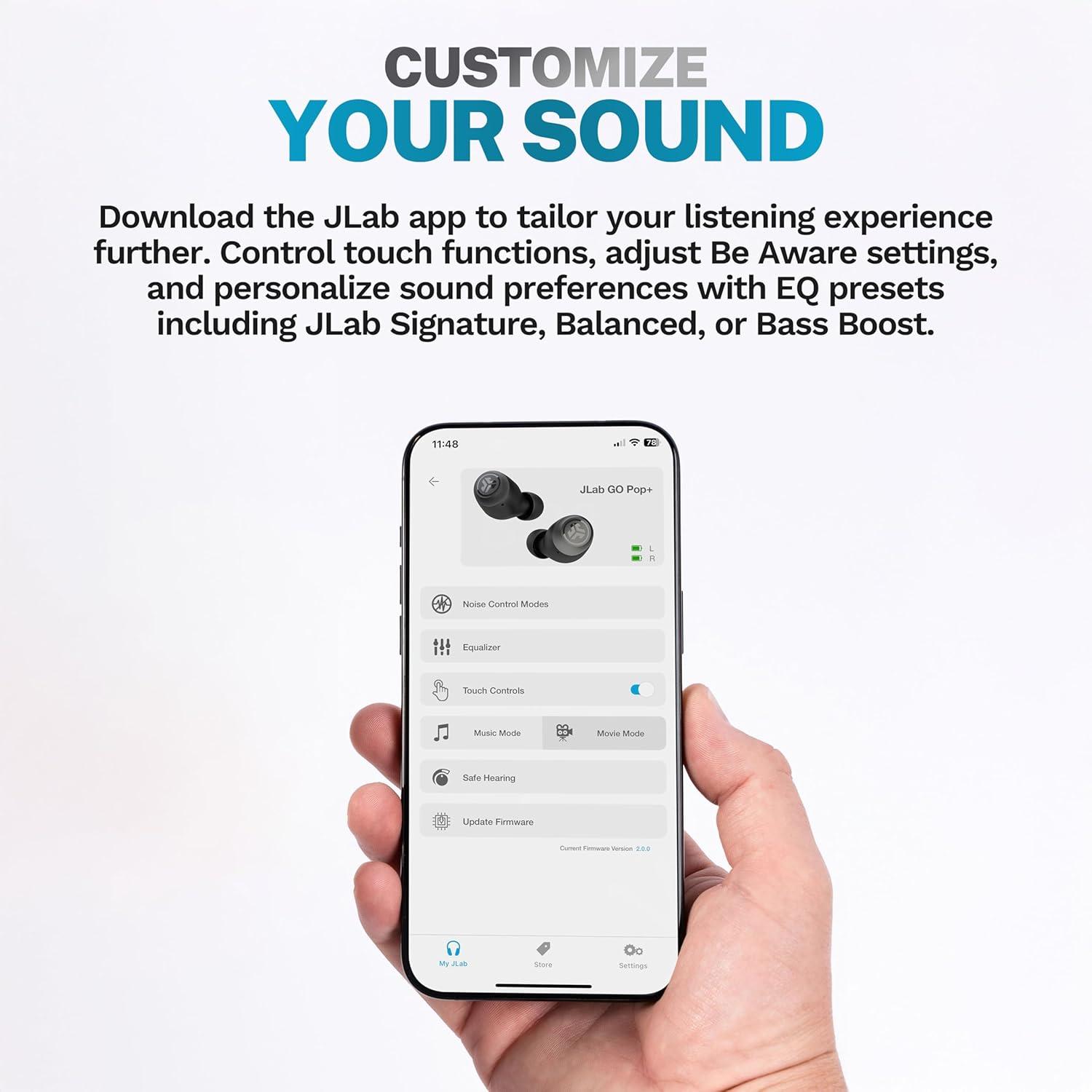 📱🔊 CUSTOM SOUND: Download the JLab app to tailor your listening experience further. Control touch functions, adjust Be Aware settings, and personalize sound preferences with EQ presets including JLab Signature, Balanced, or Bass Boost