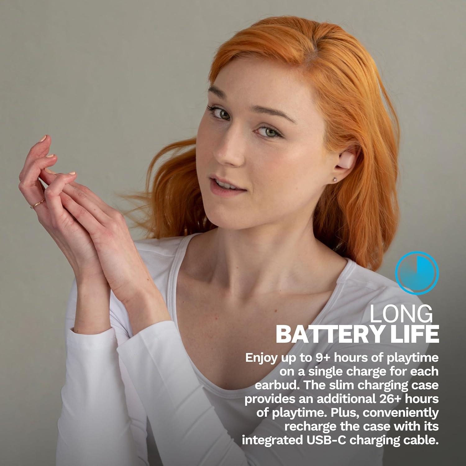 🔋BATTERY LIFE: Listen for the long battery life with your wireless earphones; stay for the comfort. Go Pop+ features 9+ hours of playtime in each earbud and 26+ extra hours from the charging case. That’s 35+ hours of playtime with your bluetooth earphones