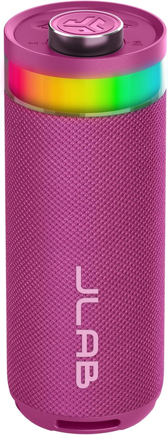 JLab Go Party Portable Bluetooth Speaker, Midnight Black, 10 Watts of Power, 16+ Hours of Playtime, IP56 Waterproofing, Customizable RGB LED Lighting, Lab Sync Up to 100 Speakers, Custom Sound in-App(Mulberry)