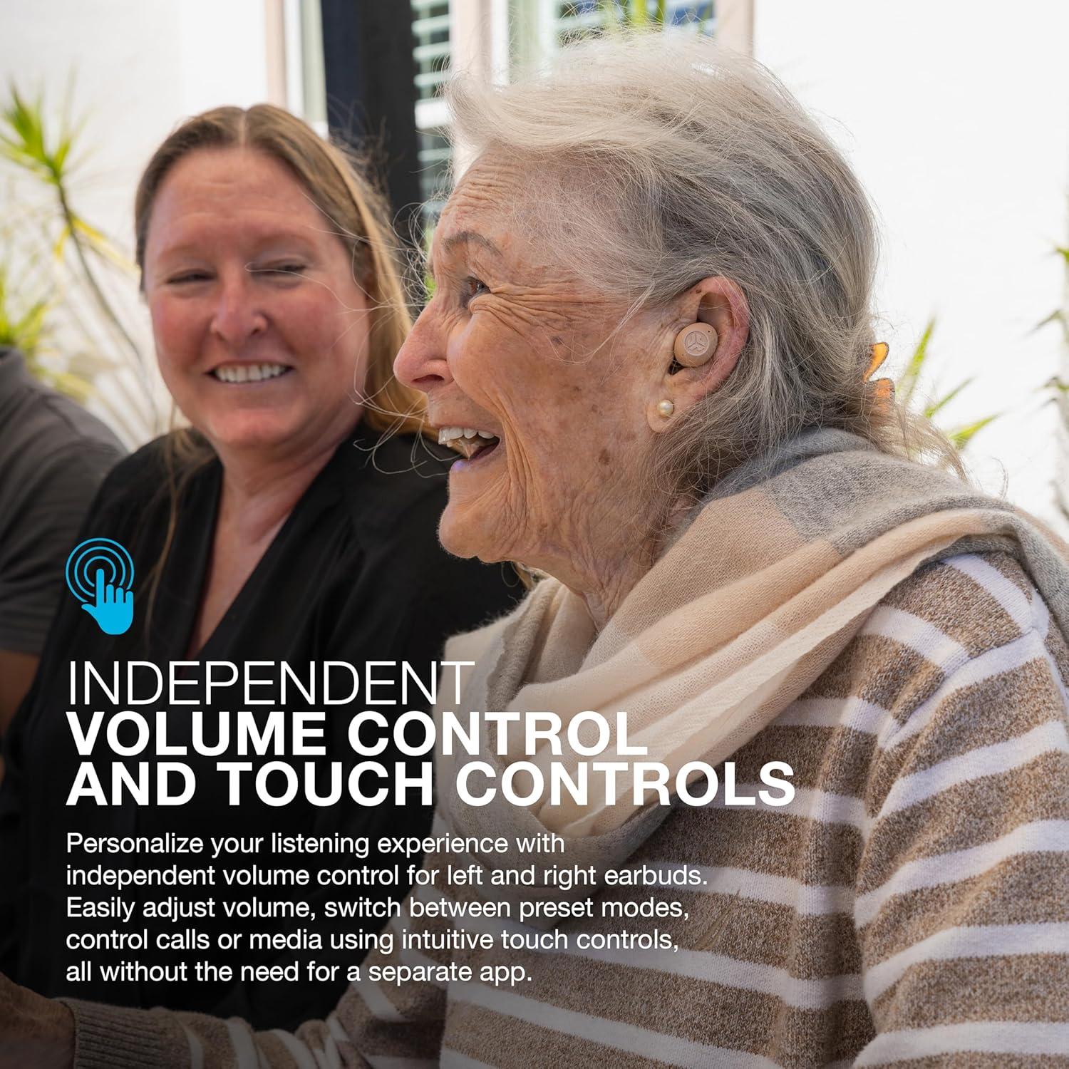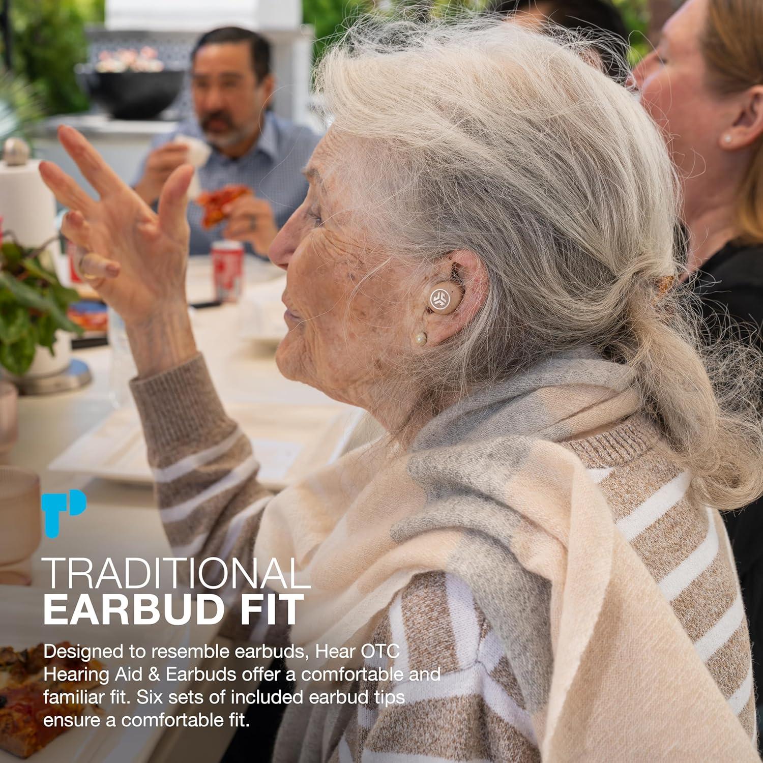 👂TRADITIONAL EARBUD FIT: Designed to resemble earbuds, Hear OTC Hearing Aid & Earbuds offer a comfortable and familiar fit, ensuring you can wear them with ease for extended periods without discomfort. Six sets of earbud tips ensure a comfortable fit, including vented tips for natural hearing and reduced occlusion.