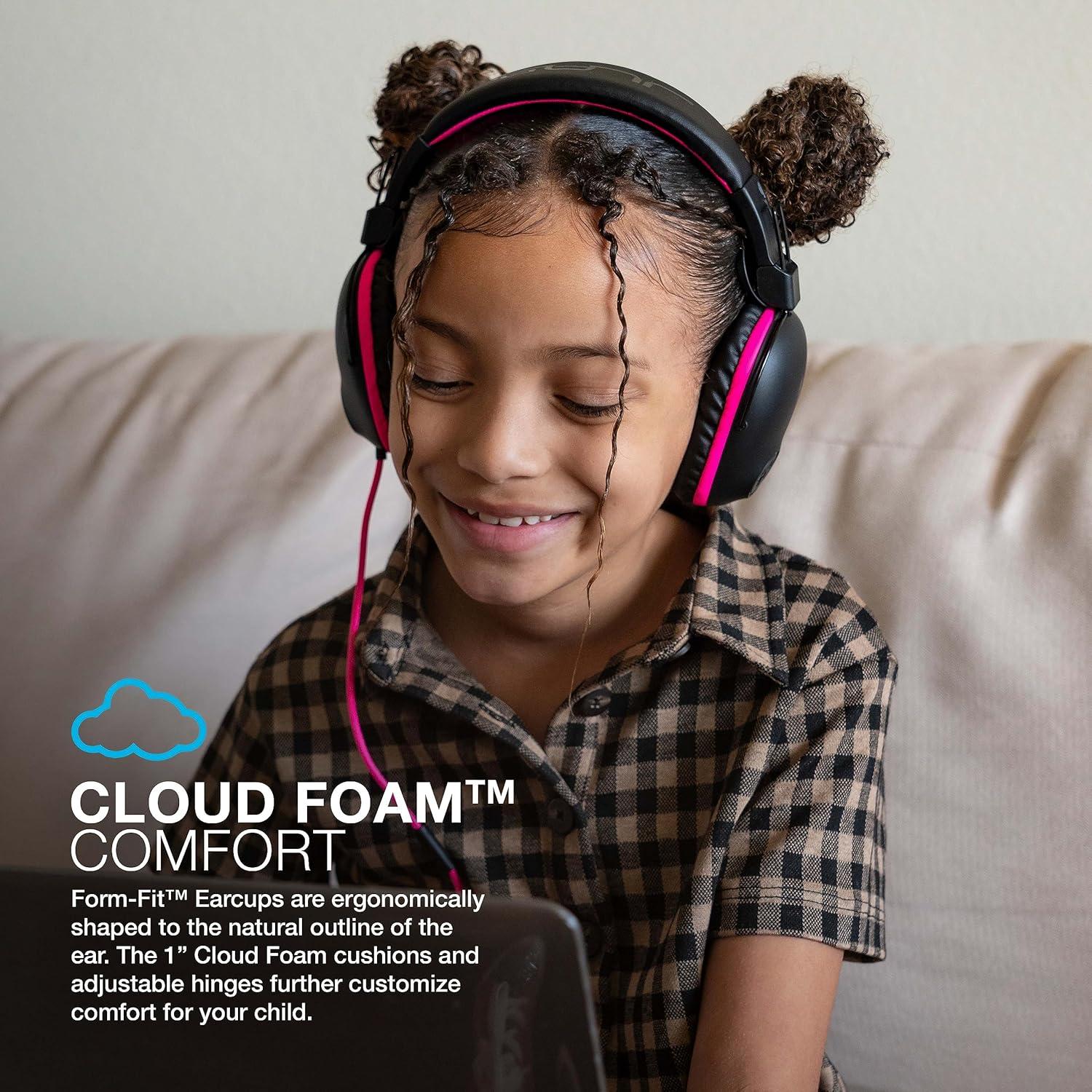 ☁️ CLOUD FOAM COMFORT: Form-Fit Earcups are ergonomically shaped to the natural outline of the ear. The 1” Cloud Foam cushions and adjustable hinges further customize comfort for your child.