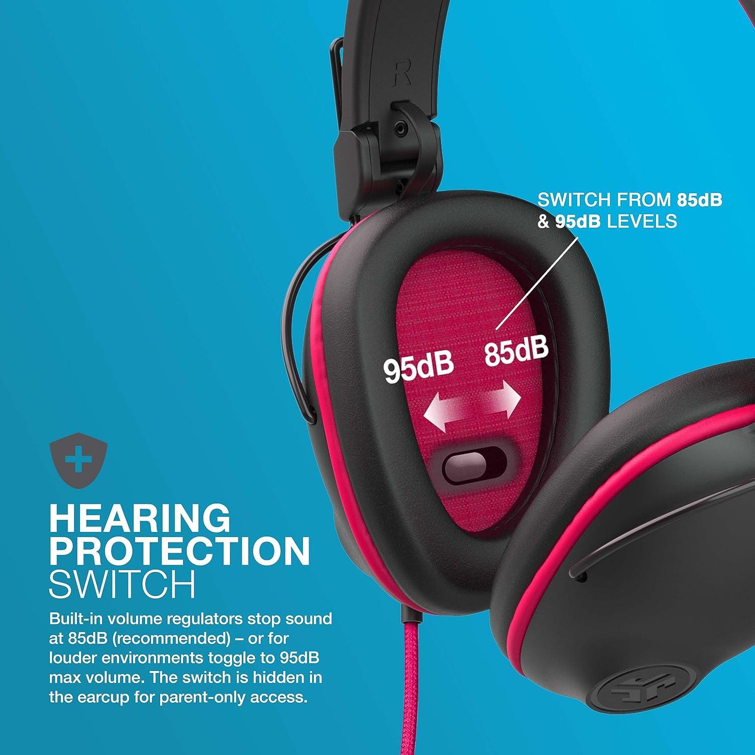 🗣️ HEARING PROTECTION SWITCH: Built-in volume regulators stop sound at 85dB (recommended) – or for louder environments toggle to 95dB max volume. The switch is hidden in the earcup for parent-only access.